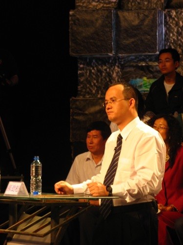 主持人:首先請出我們第一組的PK嘉賓!熱烈掌聲來歡迎,青年法律學者郝勁松,郝先生,你好!(掌聲)跟他PK的對象,是著名的媒體評論人五岳散人。歡迎五岳散人!(掌聲)一個是散人,一個是律師人。現(xiàn)問學法律的,您覺得從頭到尾,炒到這年來,馬上就要真相大白了,在法庭上,您覺得應該將他判刑嗎?