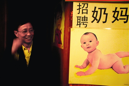奶媽的奶媽公司。據(jù)負責(zé)人張光福介紹,近段時間到這里來報名的奶媽每天都有好幾個,咨詢雇傭奶媽的電話也不斷。