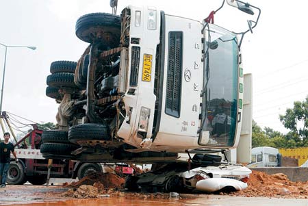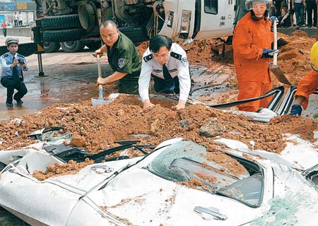 據(jù)記者回憶,10月10日上午10時50分左右,在深圳市北環(huán)大道西行方向南山立交路段,一輛泥頭車突然失控翻車,將旁邊一輛白色轎車壓扁。事發(fā)后,市交警局局長劉鳳俊及時趕到現(xiàn)場組織指揮救援。救援人員調(diào)來兩輛大型吊車,吊住泥頭車首尾兩處,試圖將泥頭車吊起。但剛啟動吊車,救援人員就發(fā)現(xiàn)泥頭車裝載的泥土太重,很可能會掉落下來將轎車埋住。經(jīng)現(xiàn)場研究,救援人員決定先挖出部分泥土后,再吊起泥頭車。現(xiàn)場十幾名救援人員迅速拿來鐵鏟與鋤頭,開始挖土。劉鳳俊沖到泥頭車前,因沒工具了,他就用手不停地挖泥土,并大叫:“加油挖啊!”在劉鳳俊的帶領下,現(xiàn)場的幾十名救援人員一起用手刨土救人,最終從車內(nèi)救出一名女嬰。