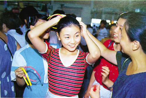 在寬敞的展廳里人流的分布不太平衡,右大廳里集中了西裝、連衣裙、風(fēng)雪衣、運動服、童裝和旅游鞋,人流量特別多,可以用水泄不通來形容。參觀右大廳的人中,愛美的北京女士是主力軍,雖然人非常多非常擁擠,但她們還是樂此不疲,有很多北京女士一連三天都一早就來到展銷會,拿出搶購大白菜的勁頭搶購漂亮的衣服。