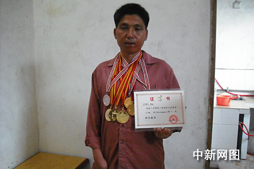 劉朝生自豪地向記者展示他獲得的獎(jiǎng)牌和證書。作 者:馮昶 李凌 鄧國(guó)柱