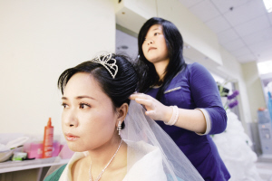 化妝、戴睫毛、換婚紗、做頭發……昨日,家住袁家崗附近的39歲未婚女陳蕓,在本報記者的幫助下第一次穿上了婚紗,拍照時露出了久違的笑容。21歲那年,由于自己找的男友不是“吃皇糧”的被母親反對,陳蕓開始了18年漫長的相親生活。屢次失敗后,絕望的她選擇了跳樓和絕食,幾次自殺未果。