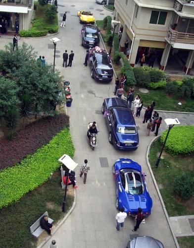貌似并不高檔的小區(qū)內(nèi),卻出現(xiàn)了超豪華的強悍車隊:“獵獸”開頭,后面跟著三輛“幻影”,以及“賓利”“世爵”等車(如圖)。昨日,一則《福州某集團老總嫁女,豪車云集》的帖子在某網(wǎng)站論壇走紅,該帖描述在福州的碧水芳洲小區(qū),某集團老總嫁女,眾多豪車云集,場面壯觀。眾多網(wǎng)友稱,已被這些豪車震得說不出話來了。(成都晚報)