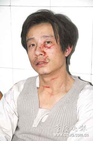 受傷的哥叫杜武,今年36歲,身體瘦弱,身高不到1米6,戴著一副近視眼鏡。昨日,杜武還躺在潼南縣人民醫院接受治療,面部傷痕累累。