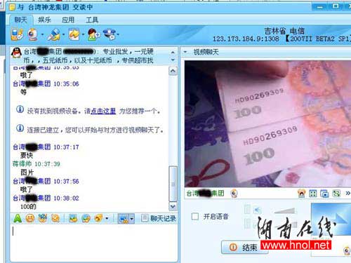 據記者與該男子聊天時,QQIP地址欄顯示對方IP在日本,接通視頻聊天后,IP地址又更換為“吉林省123.173.184.9:1308”。據該男子提供的手機號碼1363627****的歸屬地為湖北恩施,另一個手機號1313016****的歸屬地為遼寧鞍山。同時向記者提供了一個農行帳號和一個工行帳號。