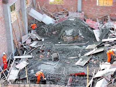 1月8日下午3時(shí)50分左右,14名施工者正在樓頂澆灌混凝土封頂,在沒(méi)有任何預(yù)兆的情況下,200多平方米的樓頂轟然墜落,毫無(wú)防備的14名工人隨之墜落。