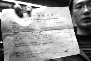 “我覺得銀行應該有責任。”劉先生說,這是第一次從自動取款機上取到假鈔。昨日,銀行經(jīng)理告訴他,以銀行的技術(shù)不可能出現(xiàn)這種問題,并將劉先生的假鈔收繳了。 (記者 葉婧)