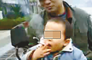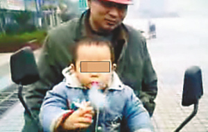 這段長(zhǎng)達(dá)四分半鐘的視頻是一名網(wǎng)友十天前發(fā)布的,聲稱是在萬州周家壩現(xiàn)實(shí)攝錄,視頻上面一名兩三歲的小男孩坐在一輛大人的摩托車前部,在一群成年人一陣“燒起”的起哄聲中,開始表演點(diǎn)火抽煙。