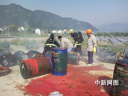 中新網臺州4月28日電(記者 江耘 通訊員 陳瑛子) 4月28日一大早,浙江臺州三門縣環(huán)保局便接到群眾舉報,在該縣海游鎮(zhèn)潺岙村附近的公路上發(fā)現大量塑料桶包裝的不明液體,十分刺鼻,疑似有人非法轉移、傾倒化工廢液。