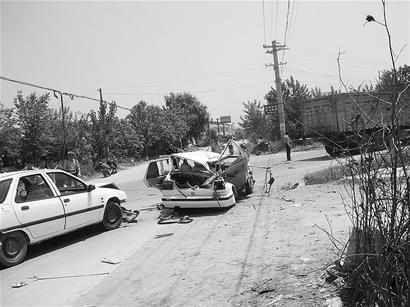 據(jù)附近廢品收購(gòu)點(diǎn)的一位目擊者稱,昨日上午10點(diǎn)55分,106國(guó)道新(洲)徐(古)公路交叉處,一輛白色捷達(dá)小轎車沿新徐公路自東向西疾馳,與沿106國(guó)道由北而南駛來的一輛重型自卸貨車相撞。轎車右后側(cè)被撞后發(fā)生180度大旋轉(zhuǎn),隨后又撞到路邊一輛停著的小車方才停下。據(jù)悉,捷達(dá)小轎車上有四男一女,司機(jī)鄭某受傷,兩男當(dāng)場(chǎng)身亡,另一男一女被送往醫(yī)院,其中男子在送醫(yī)途中死亡。