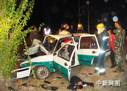 中新網(wǎng)雙鴨山5月12日電 今天凌晨零時40分,在雙鴨山市雙七公路雙富村路段,一輛出租車在行駛途中不慎撞上路旁的一棵大樹上,導(dǎo)致出租車駕駛室嚴(yán)重變形,車上7人2死5傷。