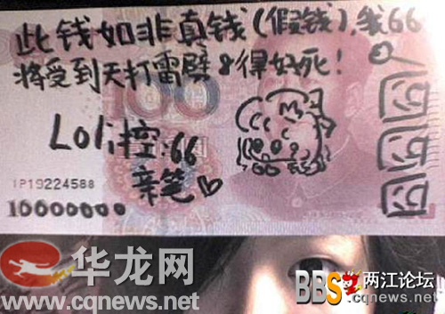 今天上午,華龍網(wǎng)兩江論壇一則《90后女生如此對待RMB》的帖子,引起網(wǎng)友的極大關(guān)注。該網(wǎng)友曝一位90后的女生,用百元人民幣點煙,除此之外,還在人民幣上畫各種稀奇古怪的圖片等等。不少網(wǎng)友跟帖痛批該女生。