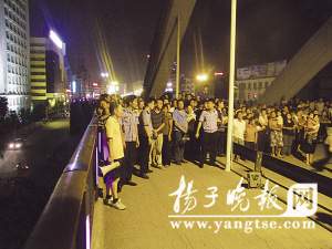 5日下午5點30分左右,正是下班的高峰期,丹陽城區中心的云陽大橋上車水馬龍,人流如梭。就在此時,一名年輕男子手拿酒瓶,歪歪扭扭,面紅耳赤,推著一輛自行車,來到橋上。將車靠上橋欄后,該男子竟徒手攀爬橋拱,路人以為此人是維修大橋的,也沒有太在意,但不一會,該男子居然爬到橋頂,大聲喊叫:“我要跳橋!”路上行人紛紛駐足觀望,很快大橋上就聚集了上百名路人,且越來越多的市民堵在橋上,開始替該男子擔心起來,見男子左右搖擺,橋上市民驚叫聲不斷。大橋之上,很快出現擁堵現象,直至無法通行。有人立即報警。