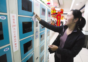9月15日晚,楊女士的兒子小王和朋友到這家超市購(gòu)物。小王將包存在免費(fèi)存包柜里,包里不僅有身份證等物品,還有一部手機(jī)。當(dāng)時(shí)密碼紙上打印的存包時(shí)間為18時(shí)25分。