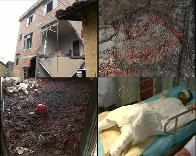 在裝配火藥的房間里面,記者見到了部分制造炮竹的原材料和工具。據(jù)了解,在這個房間內裝配好火藥之后,再由孩子們安裝引信,事故死傷的13名小學生最小的只有7歲,最大的14歲。其中燒傷面積達90%以上的5人,燒傷面積55%至78%的4人,燒傷面積12%至40%的3人。1名兒童在送往醫(yī)院后經(jīng)搶救無效于12日22時30分死亡。而燒傷的孩子將經(jīng)歷2到4個星期感染期的生命考驗,在感染期內仍然隨時有生命危險。