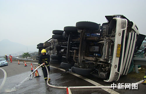 浙江一高速大貨車側翻 事故致1死1傷(圖)