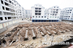 工人鐘代林介紹,“樓脆脆”曝光后,當地政府要求3個單元樓所在的40余戶住宅戶轉移并作了臨時安置;去年11月11日起,他們所在的拔山建筑工程有限公司進場,開始對占地約5000平方米的房屋拆除和重建。