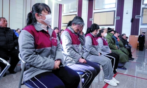 昨日上午,法庭內(nèi)的旁聽席上坐了50余名旁聽者,據(jù)了解,其中多為被告人家屬。上午10時5分,31名被告人排隊進入法庭。