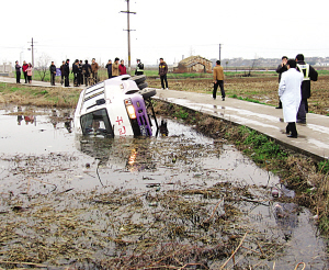采訪中,家長們幾乎異口同聲表示,平常開車的是一名何姓男子,車技很好,可出事時開車的卻是一名不相識女子。記者發現,出事的馬甫路李家橋路段非常狹窄,僅夠一車通行,而且從不遠處的水泥橋下來就是處彎道,之前又曾下過雨有點濕滑,可以說在這樣的路段開中巴車很具有難度。家長蔣先生告訴記者,“這完全就是對孩子不負責任,這里的道路寬不過3米,很多地方根本就無法會車,而且有的路邊就是深深的水塘和田地,稍不留神就會滑下!奔议L吳先生更是向記者表示,他認識那名開車女子,應該是姓鮑,好像是做皮草生意的,她是不是拿中巴車來練手啊,說不定根本就沒駕照。