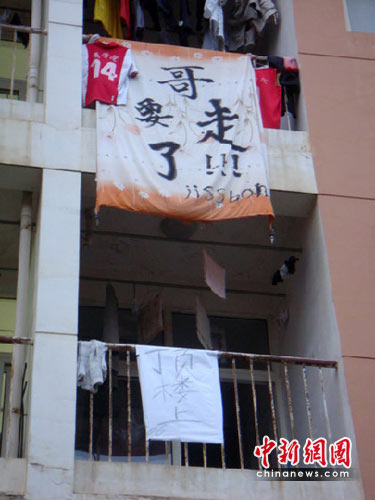 原來,湖南農業大學一位臨近畢業的大四學生別出心裁地把“哥要走了”的“吶喊”寫在被子上,并懸掛于陽臺上,樓下現實版“跟帖”——“頂樓上”,被網友戲稱為“被子哥”。一時間該圖片在國內某知名社交網站迅速躥紅,被網友廣泛分享“瘋”傳。