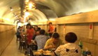 【解說】據(jù)記者了解,部分納涼點是由舊時的防空洞改造而成。重慶特殊的地理環(huán)境和歷史背景促使了這些防空洞的產(chǎn)生。隨著時間的推移,防空洞逐漸轉為民用,成為重慶市民避暑納涼的去處。部分防空洞經(jīng)過改造,如今成為了酒窖、餐館等。炎炎夏日,不少重慶市民和外地游客都喜歡到防空洞里吃火鍋。