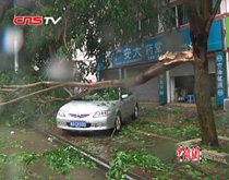 記者出鏡:記者剛剛從海南省氣象臺了解到最新消息 納沙現在距離海南110公里的海面上 從昨天開始 海口市已經出現這樣風雨大作的天氣 大家可以看到我身后的這一棵樹已經被大風吹倒 記者一路走來 海口市區內部分路段已經出現內澇擁堵現象