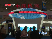 【解說】新疆展區,在外觀上不僅有著濃郁的少數民族風情,在展廳內更是擺放著各式各樣的新疆美食,卷成塔狀的馓子,各種口味的馕,哈密瓜等,讓人流連忘返。而據工作人員介紹,展出的這些美食僅僅占了新疆美食的十分之一。