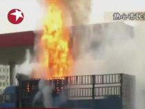 驚心!司機將起火的貨車開進加油站