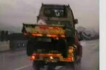 兩輛小貨車高速上玩“疊羅漢”為省通行費