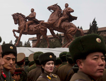 朝鮮已故領(lǐng)導(dǎo)人金日成與金正日銅像揭幕