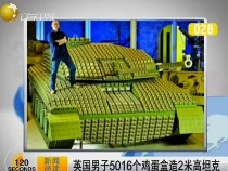 英國男子5016個雞蛋盒造2米高坦克
