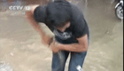實拍:廣西崇左內澇 市民馬路上抓魚