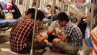 四個小伙乘地鐵 席地而坐切磋牌技