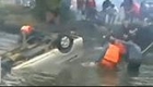 實拍眾人用木筏繩索打撈落水校車