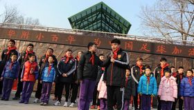 拍客:國足隊員佩戴紅領巾 參加校園行活動