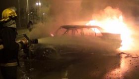 拍客:湖南岳陽兩車相撞 大火燃燒