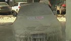 長春橋下一轎車被凍成“冰雕”