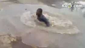美青年為打賭跳“淺”水坑被淹沒