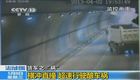 實拍大貨車超速行駛撞上隧道壁 小孩被甩出