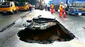 深圳國道突現大坑 貨車雙輪被卡飛