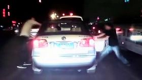 實拍:美女街頭持磚頭瘋狂砸車 只為報復負心男