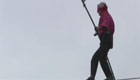 牛人風中蒙眼走鋼絲