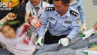 實拍:一噸重玻璃砸倒兩店員 民警緊急救援