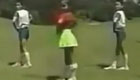 美女主持人直播球賽 被足球砸中腦袋