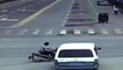監拍摩托車闖紅燈遭面包車推行數十米