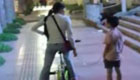 母親鐵鏈拖兒子騎車