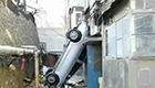 轎車"跳"下土墻栽進廚房