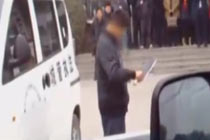 實拍:“雙刀男”街頭連砍兩車 特警果斷制服