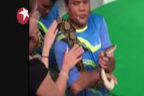 女游客泰國親吻蟒蛇被咬