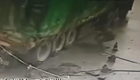 監拍:貨車側翻 修理工被砸前幸運脫險